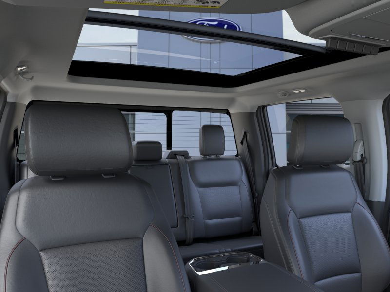 4WD. Black Appearance Package (6" Ebony Black Angular Running Boards, Black Painted Front Grille Surround, Body Color Front and Rear Bumpers, and Ebony Black Painted Mirror Caps), Ford Connectivity Package (1-Year Included), Internet access capable: 5G Modem - Ford Connectivity Package, Order Code 618A (Flow-Through Console, Front ActiveX Trimmed 40/Console/40 Seats, Radio: B&O Sound System by Bang and Olufsen, SiriusXM with 360L, SYNC 4 with Enhanced Voice Recognition, and Wheels: 18" Bright Machined and Carbonized Gray Aluminum), Snow Plow Prep Package, 4WD, 190 Amp Alternator, 4-Wheel Disc Brakes, 410 Amp Dual Alternators, 8 Speakers, ABS brakes, Adjustable pedals, Air Conditioning, Alloy wheels, AM/FM radio: SiriusXM with 360L, Auto High-beam Headlights, Auto-dimming Rear-View mirror, Automatic temperature control, BLIS with Cross-Traffic Alert, Brake assist, Bumpers: chrome, Compass, Delay-off headlights, Driver door bin, Driver vanity mirror, Dual AGM 68 AH Battery, Dual front impact airbags, Dual front side impact airbags, Electronic Stability Control, Emergency communication system: SYNC 4 911 Assist, Front anti-roll bar, Front Bucket Seats, Front Center Armrest, Front dual zone A/C, Front fog lights, Front License Plate Bracket, Front reading lights, Fully automatic headlights, Garage door transmitter, Heated door mirrors, Heated front seats, Heated rear seats, Heated steering wheel, Illuminated entry, LED Roof Clearance Lights, Low tire pressure warning, Memory seat, Navigation system: Connected Navigation, Outside temperature display, Overhead airbag, Overhead console, Panic alarm, Passenger door bin, Passenger vanity mirror, Pedal memory, Power door mirrors, Power driver seat, Power passenger seat, Power steering, Power windows, Power-Sliding Rear-Window with Defrost, Privacy Glass, Rain sensing wipers, Rear Parking Sensors, Rear reading lights, Rear seat center armrest, Rear step bumper, Rear window defroster, Remote keyless entry, Security system, Speed control, Split folding rear seat, Steering wheel mounted audio controls, Tachometer, Tailgate Step and Handle, Telescoping steering wheel, Tilt steering wheel, Traction control, Trip computer, Turn signal indicator mirrors, Twin Panel Power Moonroof, Upfitter Switches (6), Variably intermittent wipers, and Ventilated front seats.