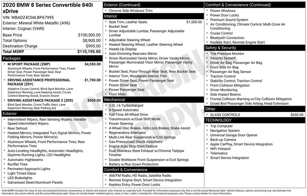 CARFAX One-Owner. 16 Speakers, 4-Wheel Disc Brakes, ABS brakes, Active Blind Spot Detection, Active Driving Assistant, Active Driving Assistant Pro, Aerodynamic Kit, Air Conditioning, Alloy wheels, AM/FM radio: SiriusXM, Apple CarPlay Compatibility, Auto High-beam Headlights, Auto tilt-away steering wheel, Auto-dimming door mirrors, Auto-dimming Rear-View mirror, Automatic temperature control, Brake assist, Bumpers: body-color, Convertible roof lining, Convertible roof wind blocker, Delay-off headlights, Door auto-latch, Driver door bin, Driver vanity mirror, Driving Assistance Package 2, Driving Assistance Professional Package, Dual front impact airbags, Dual front side impact airbags, Electronic Stability Control, Emergency communication system: BMW Assist eCall, Extended Merino Leather, Extended Traffic Jam Assistant, Exterior Parking Camera Rear, Four wheel independent suspension, Front anti-roll bar, Front Bucket Seats, Front Center Armrest, Front dual zone A/C, Front reading lights, Fully automatic headlights, Garage door transmitter, Genuine wood console insert, Glass Controls, Glass rear window, harman/kardon Surround Sound System, harman/kardon® Speakers, Heads-Up Display, Heated door mirrors, Heated front seats, Heated steering wheel, Illuminated entry, Integrated roll-over protection, Lane Departure Warning System, Leather Shift Knob, Leather steering wheel, Low tire pressure warning, Lumbar Support, M Sport Package, M Sport Package (337), M Steering Wheel, Memory seat, Multi-Functional Seats, Navigation System, Occupant sensing airbag, Outside temperature display, Panic alarm, Park Distance Control, Passenger door bin, Passenger vanity mirror, Power convertible roof, Power door mirrors, Power Drivers Seat, Power passenger seat, Power steering, Power windows, Radio data system, Radio: AM/FM Audio System, Rain sensing wipers, Rear anti-roll bar, Rear window defroster, Remote keyless entry, Security system, Shadowline Exterior Trim, SiriusXM Satellite Radio, Speed control, Speed-sensing steering, Speed-Sensitive Wipers, Split folding rear seat, Sport Seats, Steering wheel memory, Steering wheel mounted audio controls, Tachometer, Telescoping steering wheel, Tilt steering wheel, Traction control, Trip computer, Turn signal indicator mirrors, Variably intermittent wipers, Vernasca Leather Upholstery, Wheels: 18" x 8" Fr & 18" x 9" Rr V-Spoke, Wheels: 19" x 8" Fr & 19" x 9" Rr M Double-Spoke, WiFi Hotspot, Wireless Charging, Without Lines Designation Outside. Priced below KBB Fair Purchase Price! Odometer is 36054 miles below market average! 20/27 City/Highway MPG
