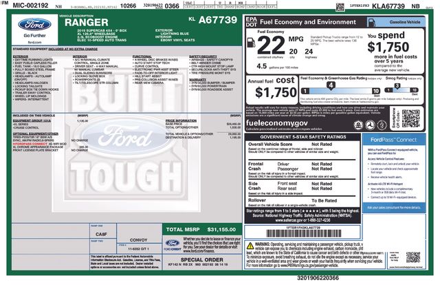 2019 Ford Ranger XL Truck SuperCab EcoBoost I4 GTDi DOHC Turbocharged VCT