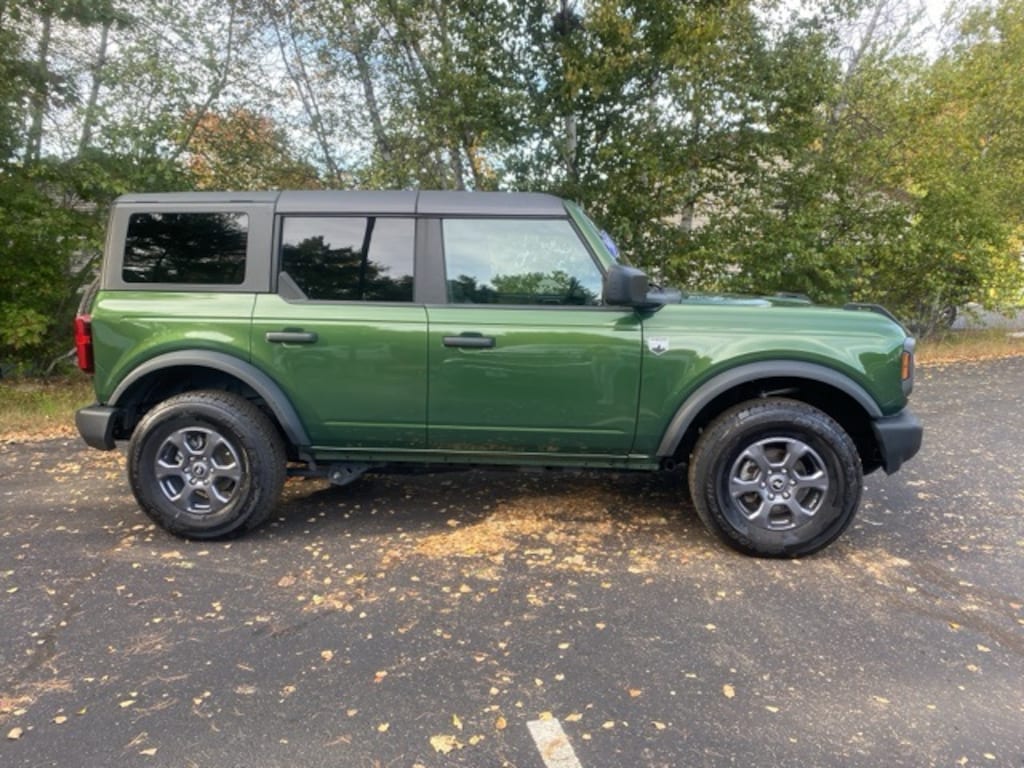 Adventure begins here with this 2023 Ford Bronco Big Bend 4-Door 4WD in striking Eruption Green Metallic with a black interior. This one-owner Bronco features a clean CARFAX and the versatile hard top, making it a perfect match for New England drivers who want rugged performance and everyday comfort. Built with the 2.3L EcoBoost engine and legendary Bronco engineering, its ready for Monadnock mountain trails or daily drives around Keene and Brattleboro.