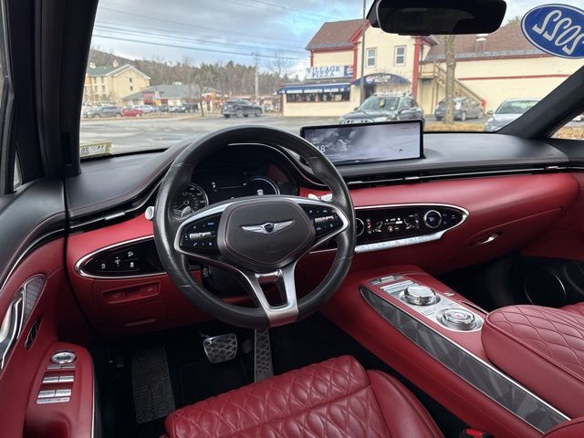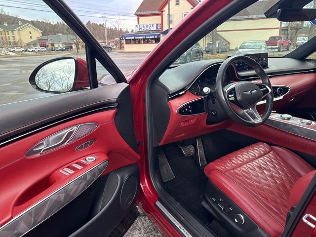 Finished in striking Mauna Red, the GV70 Sport features bold lines, sculpted bodywork, and a distinctive Genesis grille that give it a sophisticated yet aggressive stance. LED lighting accents, athletic proportions, and refined detailing complete its modern luxury SUV presence.