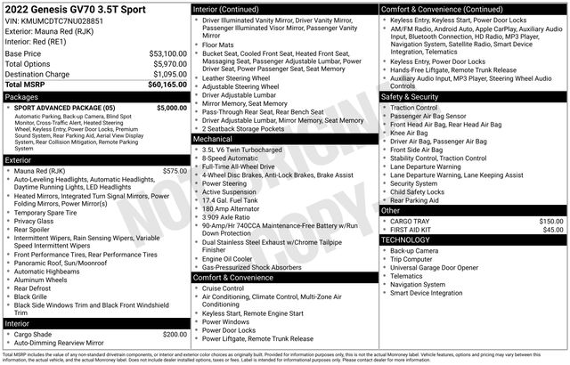 Make/Model: Genesis GV70 3.5T Sport